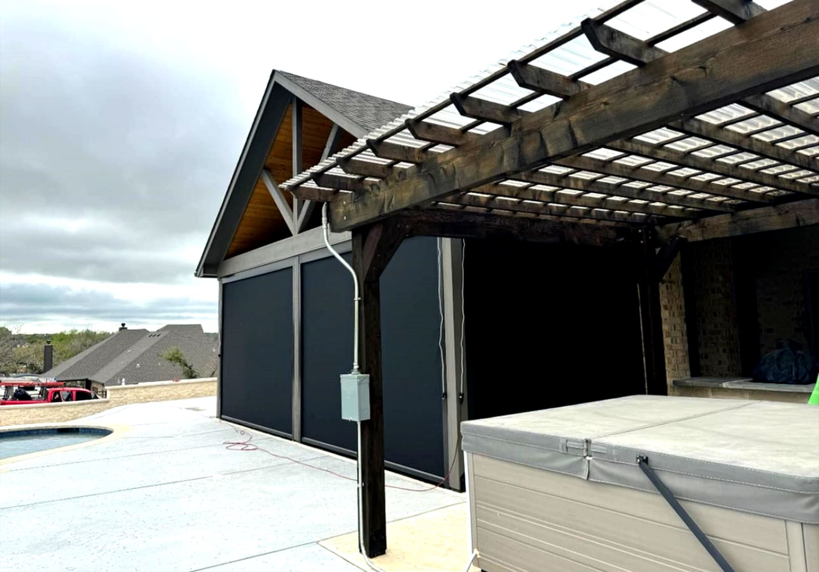 The V-Track retention system is engineered to tight tolerances. Tracks must be level, fabric tension must be consistent, and motor limits must be calibrated precisely. This is why every installation is performed by dealers who have been factory-trained on the V-Track system — not general contractors learning on the job.